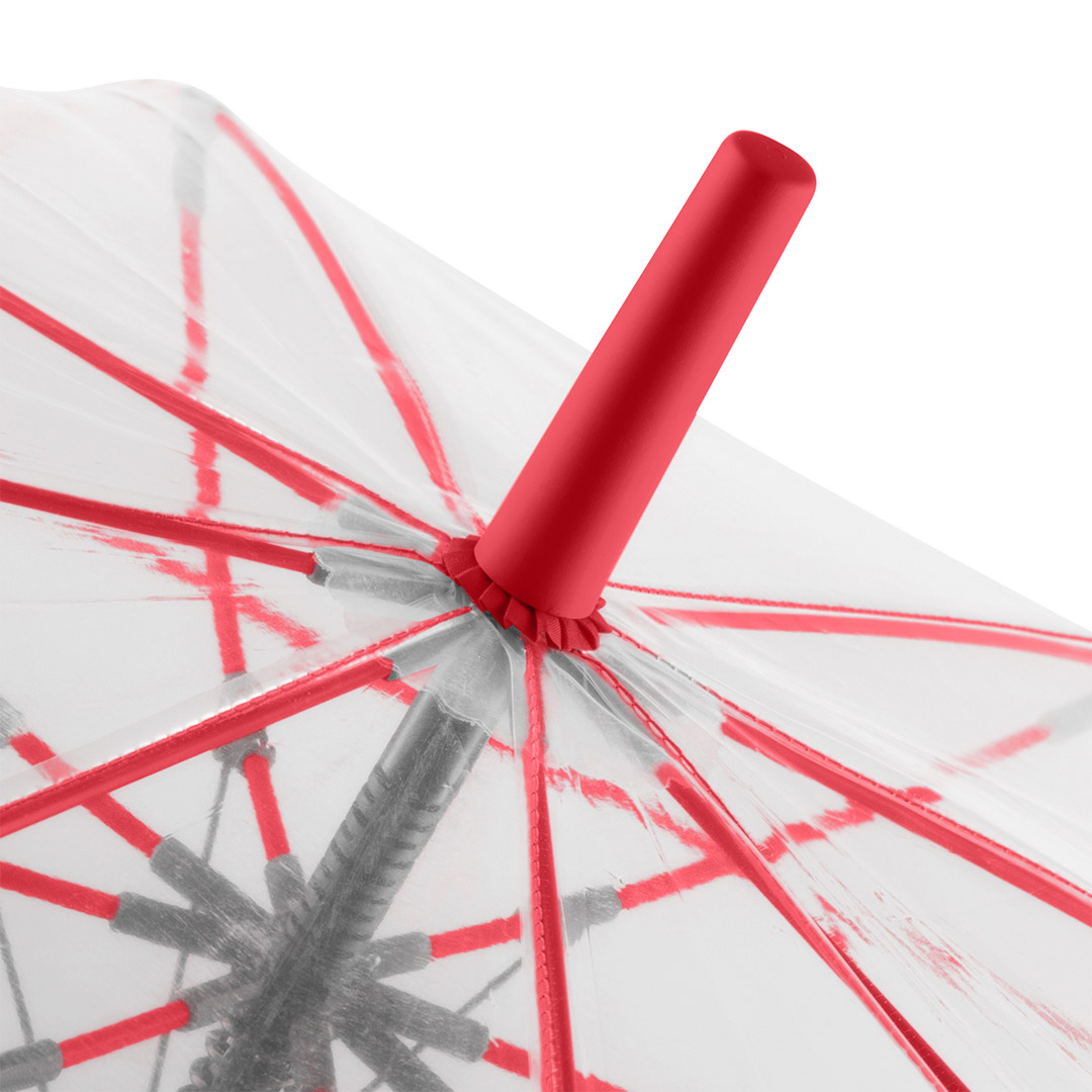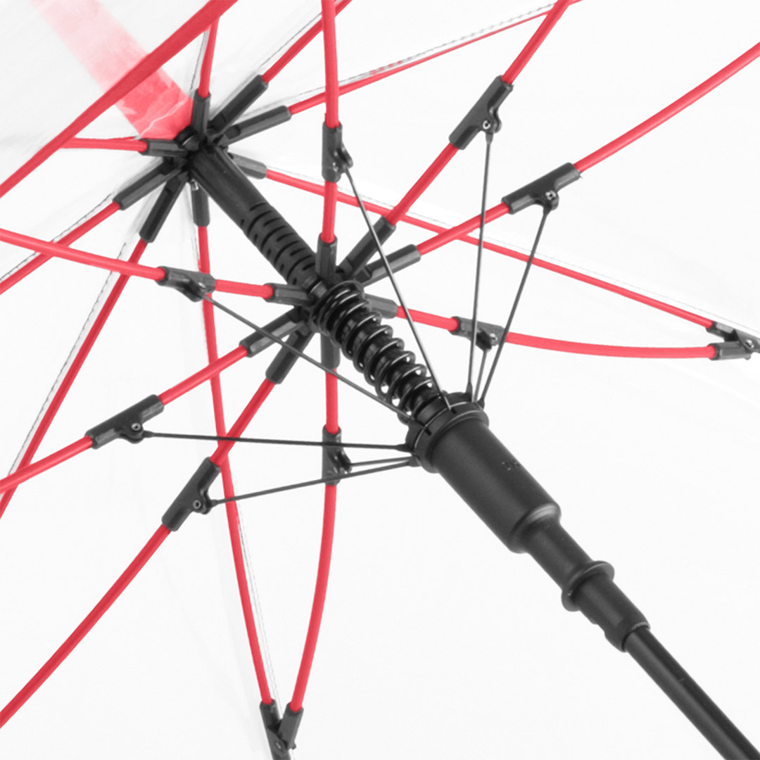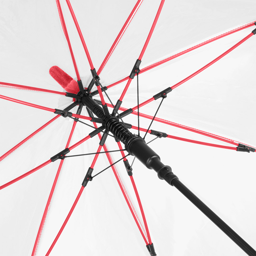 Ansprechender Automatik-Stockschirm mit transparentem Bezug und farbigen Details