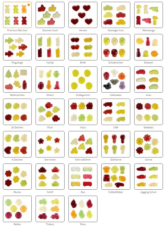 Produktinformationen "Fruchtgummi Standard-Formen, 10 g "