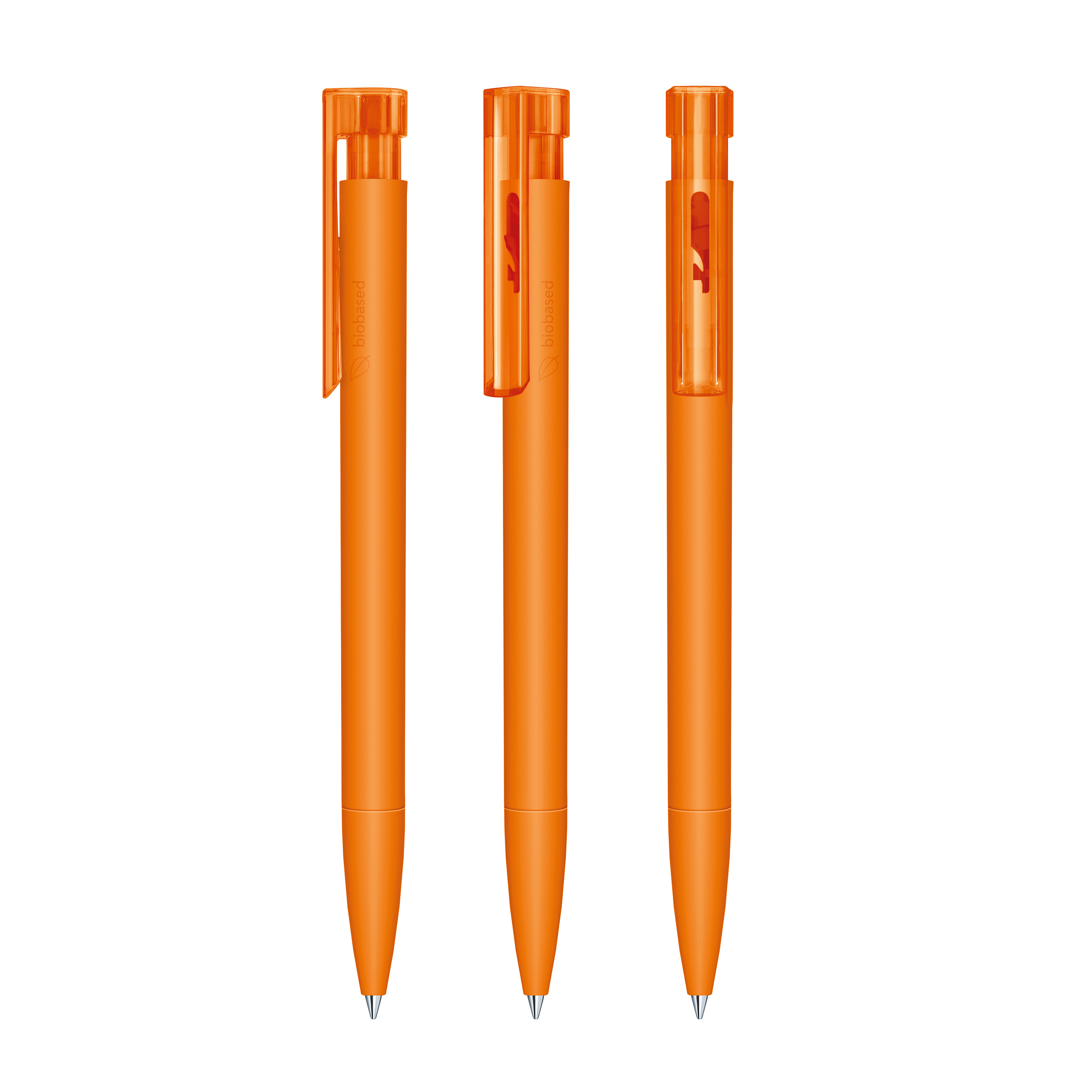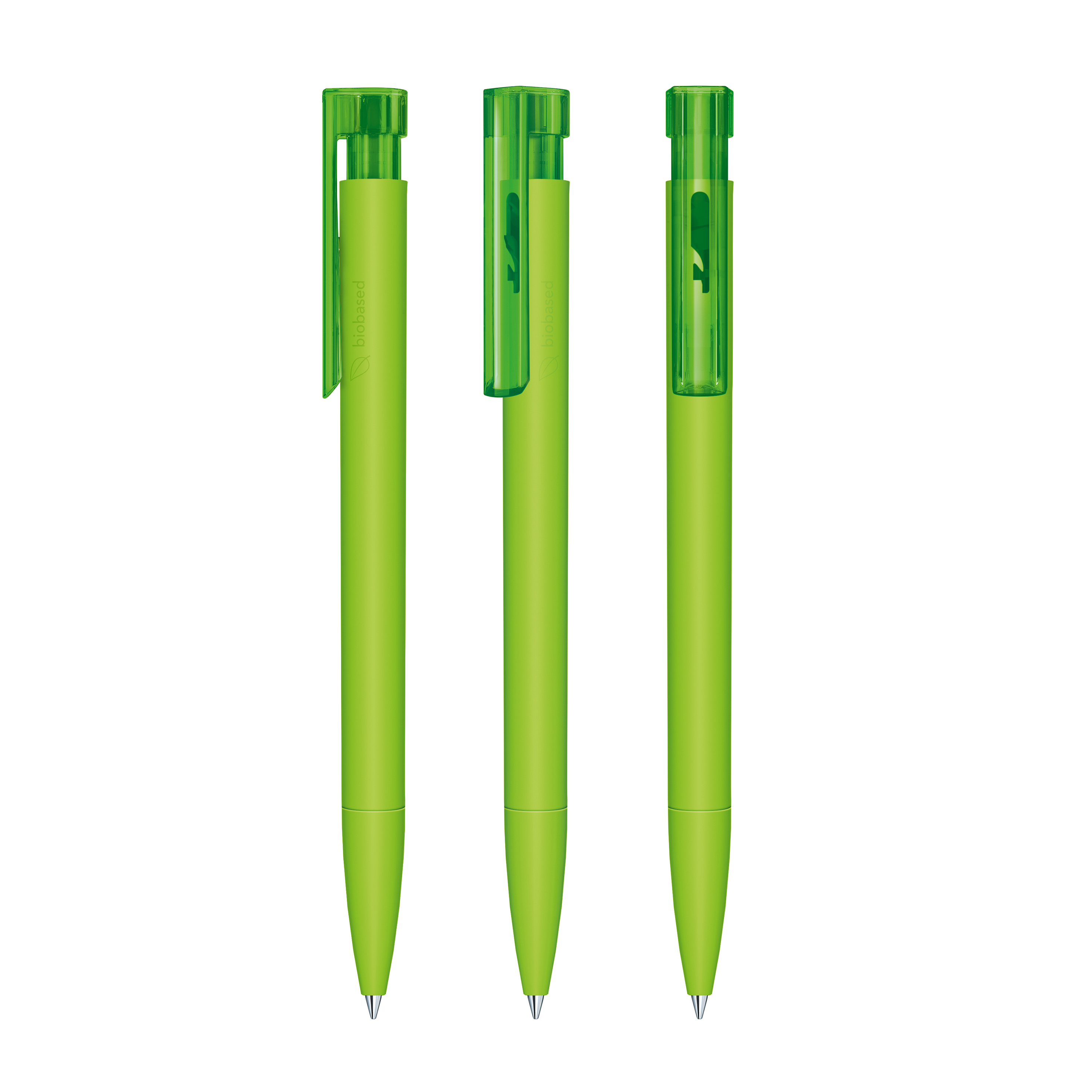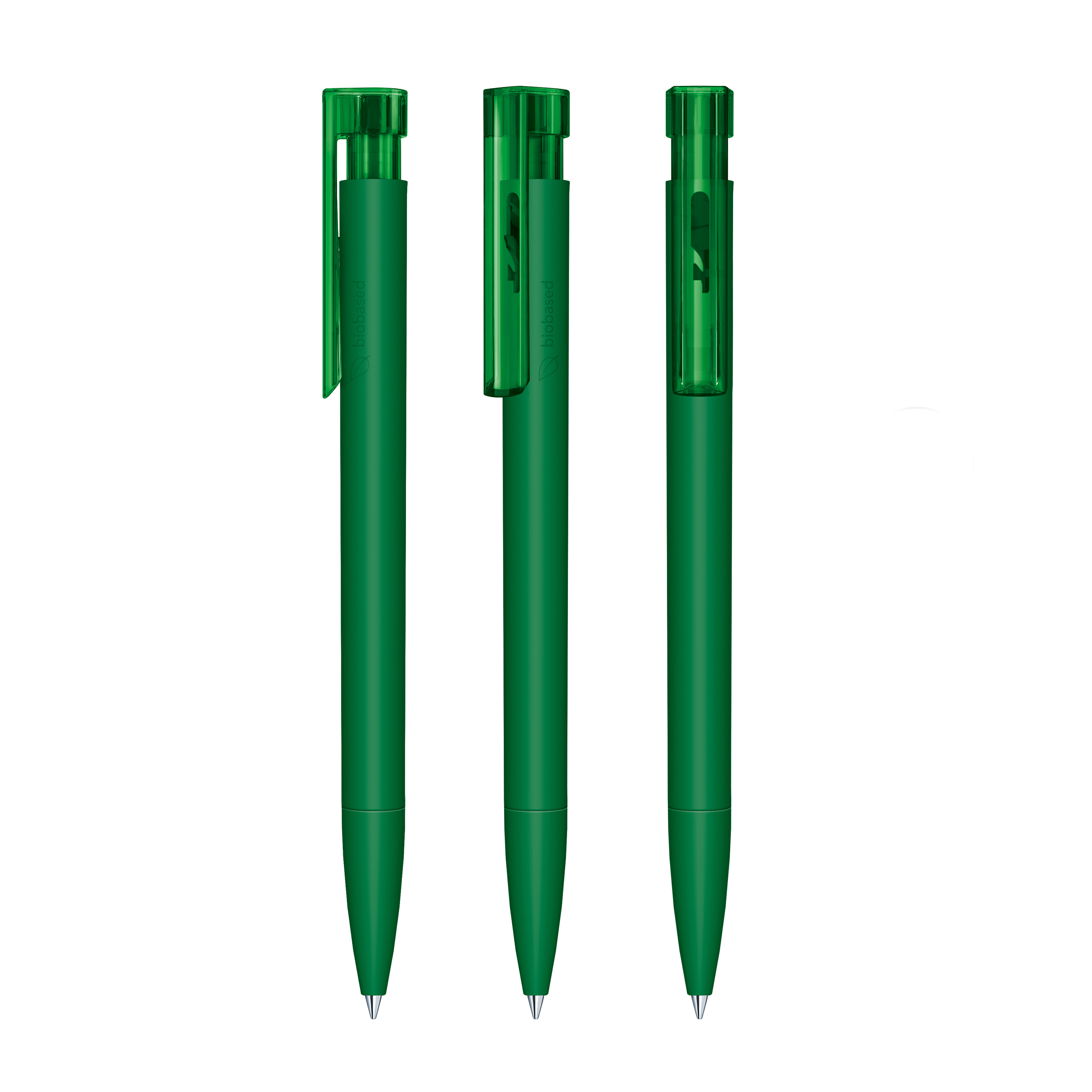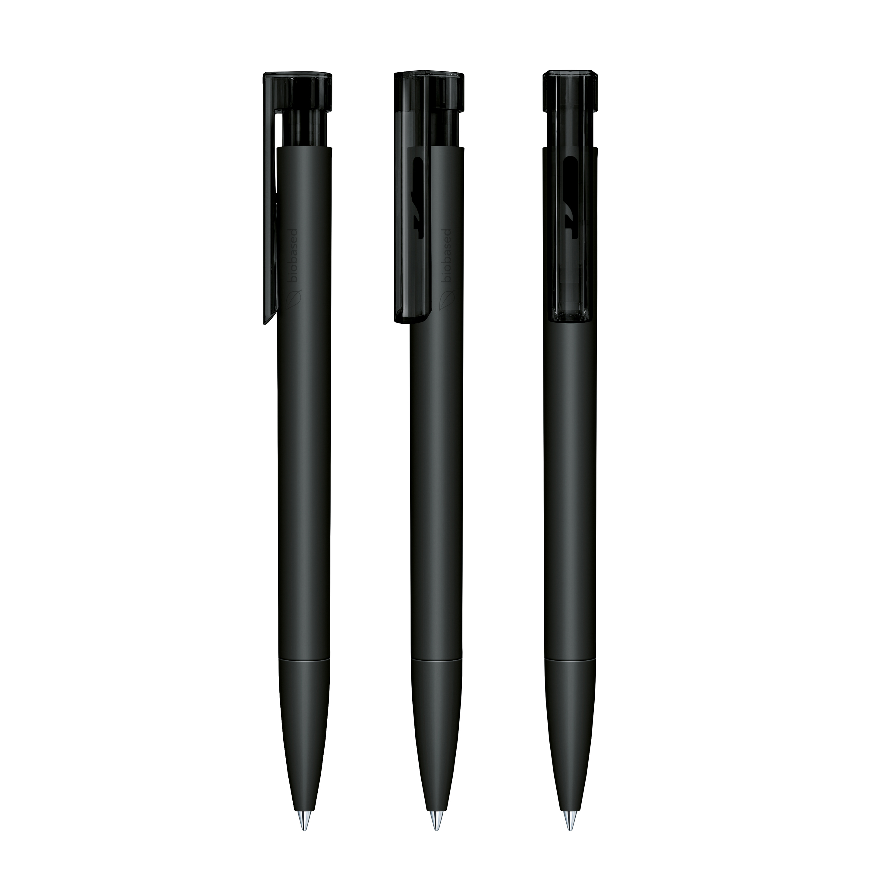 Druckkugelschreiber „senator® Liberty Bio“ – klar, modern und biobasiert. Der „Liberty Bio“ verfügt über eine matte Oberfläche und wird aus biobasiertem Kunststoff (PLA auf Zuckerrohrbasis) gefertigt. Seitlich ist er mit der Kennzeichnung „biobased“ versehen, die seinen nachhaltigen Anspruch sichtbar macht. Ein transparenter Clip ergänzt das klare, moderne Design und setzt einen leichten Akzent. Mit der senator® magic flow G2 Mine (1,0 mm) erreicht er eine Schreiblänge von bis zu 5.000 Metern – zuverlässig und präzise. Der Kugelschreiber ist Made in Germany und steht für höchste Qualität, Langlebigkeit und Zuverlässigkeit. Die Option einer kostenlosen Ersatzmine verlängert die Lebensdauer und sorgt für mehr Nachhaltigkeit und anhaltende Werbewirkung.
